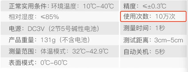①如果你有仔細看過倍爾康非接觸式體溫計的說明書,就會發(fā)現(xiàn)“使用次數(shù)”的說明,這個“使用次數(shù)”也就是按鍵的使用次數(shù)。以倍爾康JXB-178為例,它的按鍵使用次數(shù)是10萬次,超過10萬次后也會影響準確度。