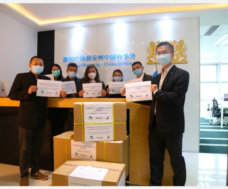 2月25日,在國內抗疫關鍵時期,巴伐利亞州在自身亦受疫情影響的情況下,仍委托其中國代表處為南沙區(qū)籌措物資,向南沙區(qū)捐贈了一批醫(yī)用口罩,支援南沙區(qū)一線抗疫工作。近日巴伐利亞州疫情形勢嚴峻,州政府于當?shù)貢r間3月16日宣布進入緊急狀態(tài),南沙區(qū)立即動員區(qū)內愛心企業(yè)捐贈。此次捐贈物資包括向巴伐利亞州抗疫一線捐贈的醫(yī)用外科口罩4000個(含兒童醫(yī)用外科口罩1000個)、非接觸式紅外體溫計35個,以及向巴伐利亞州中國代表處捐贈的一次性醫(yī)用外科口罩500個。